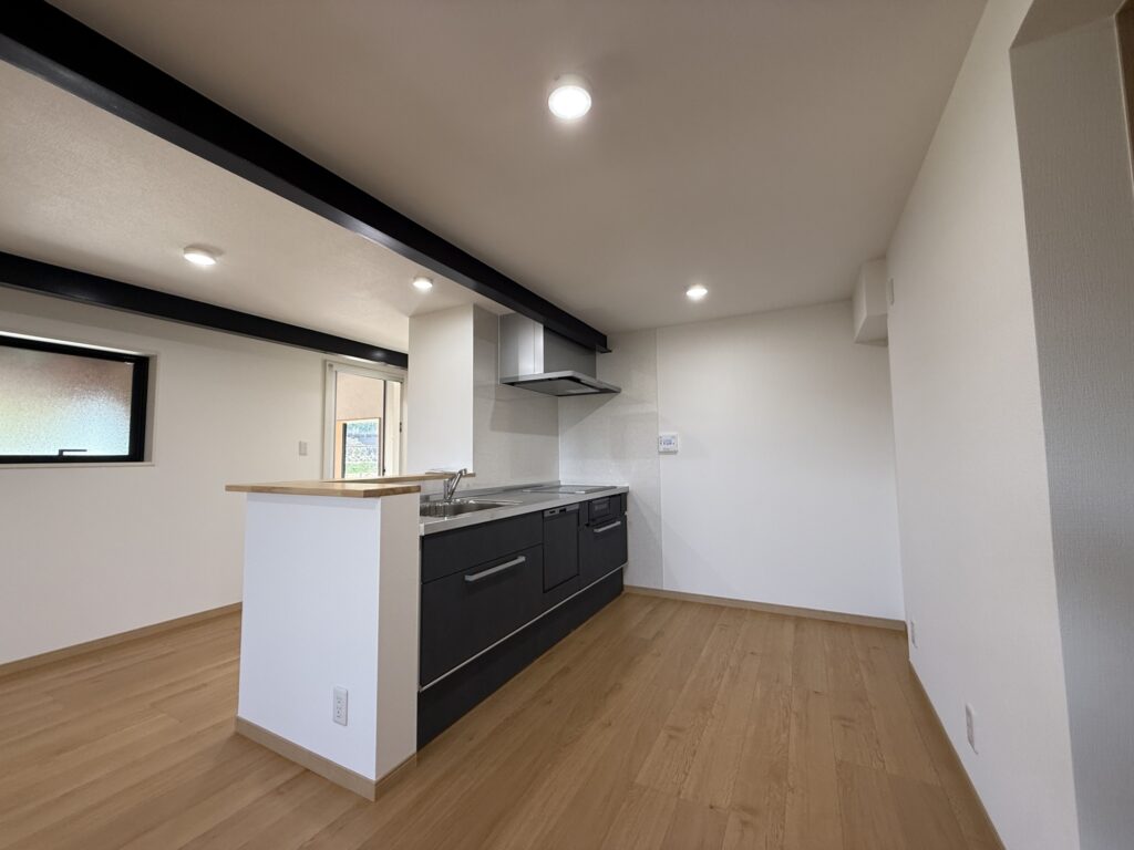 壁付けのキッチンはI型キッチンにカウンターを付けることで