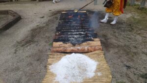 その護摩木を焼いた後、炭木の上を裸足で歩いて渡るという行事です。