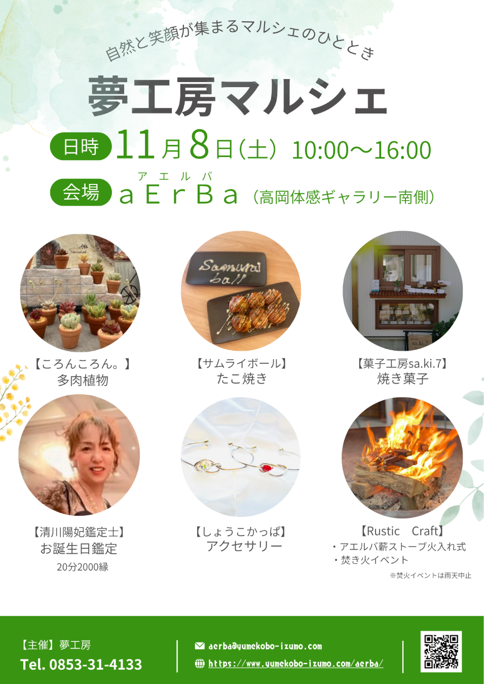 11月8日(土)10:00~アエルバ南棟でマルシェを行います