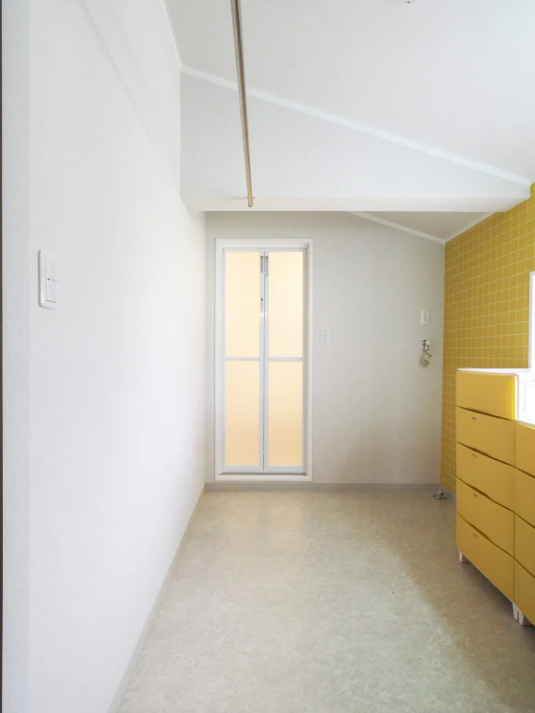 洗面脱衣室に上部物干金物を取り付けています。洗濯物がすぐに干せ、天気を気にする必要もありません。