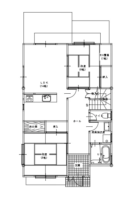 LDKのアクセントになる梁を見せたいとのご要望があり、元々の梁は横方向に入っていましたが、縦に入れ梁を見せました。