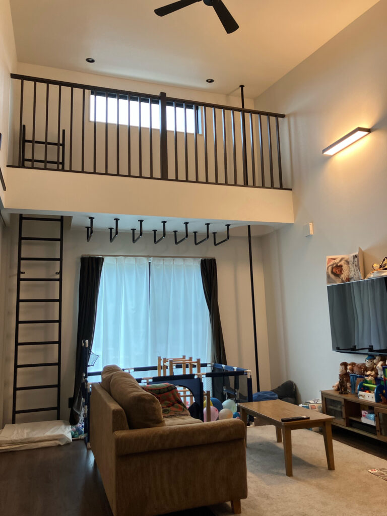 大空間のLDKには、のぼり棒・雲梯・ロフト〟を施工しました。