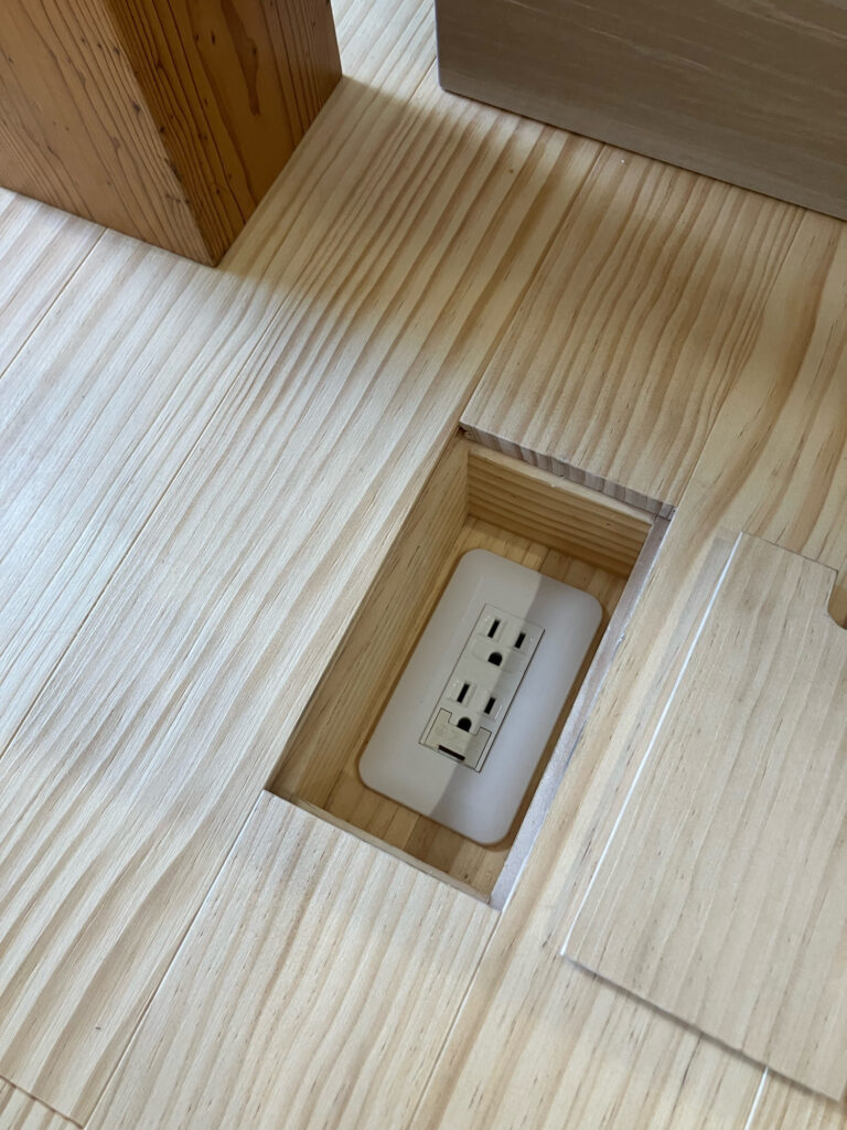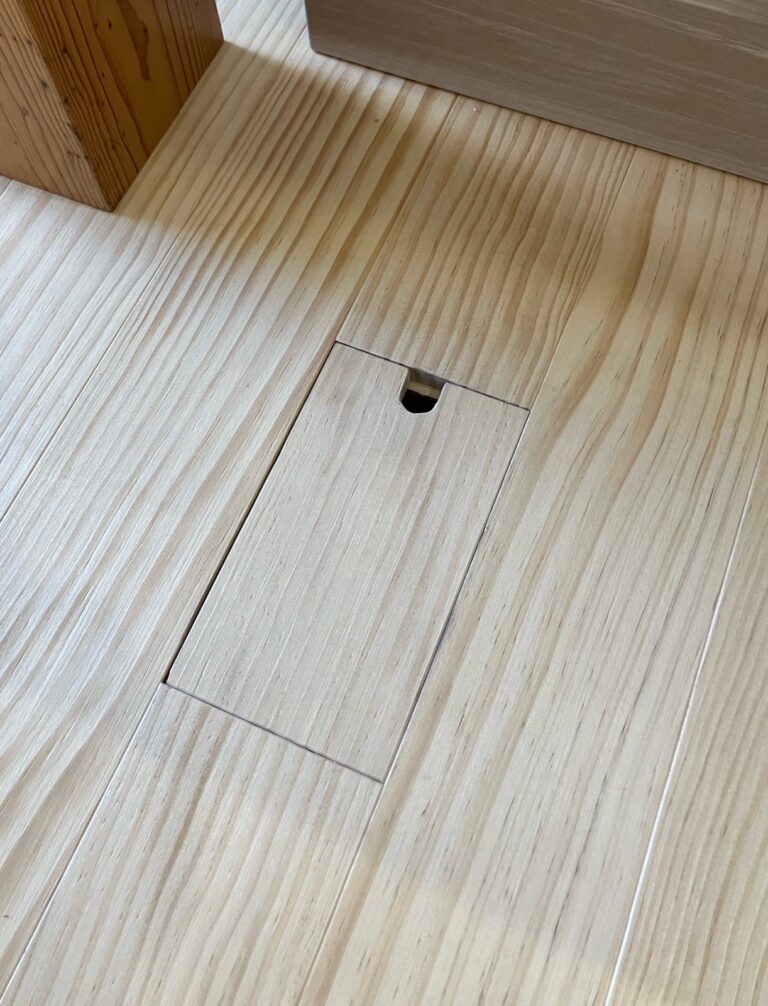キッチン横の床に埋め込みタイプのコンセントを施工しました。