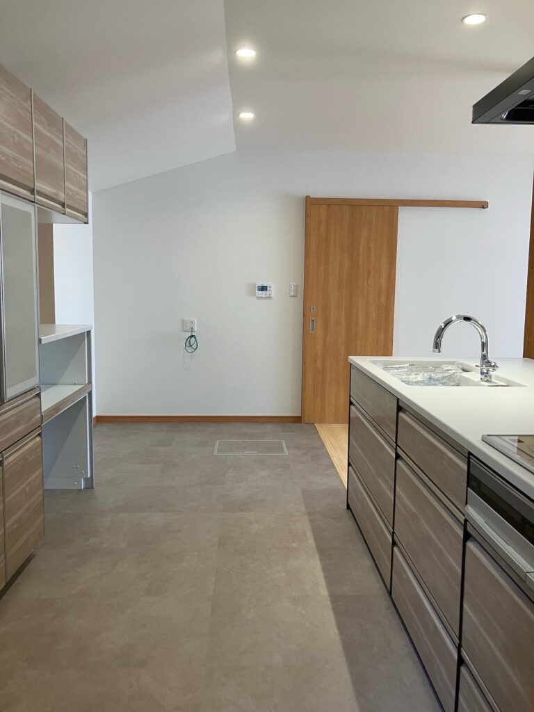 台所と居間を仕切っていた壁を撤去し、壁付けだったキッチンは開放感のある対面キッチンへ。