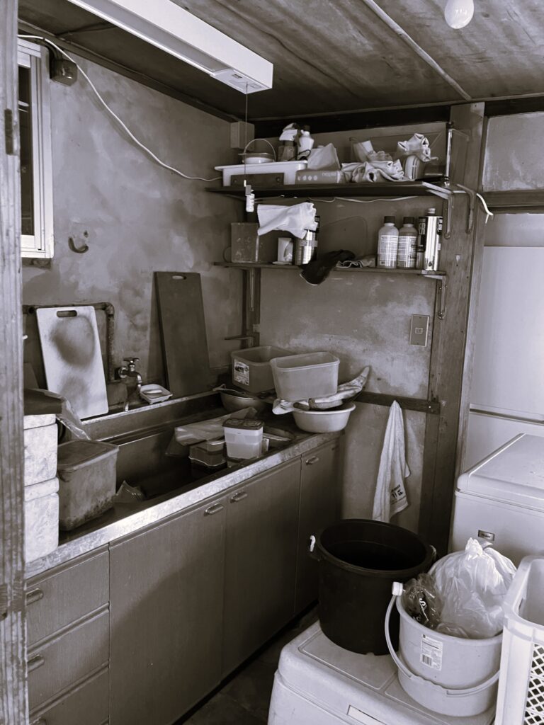 生活の中心である台所は、自然光が入りづらいため暗く寒い空間でした。
