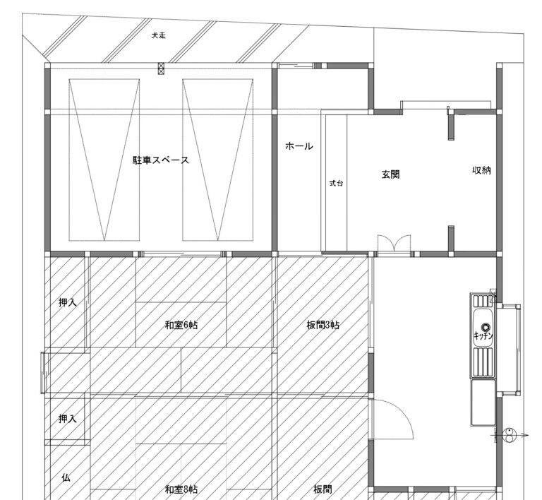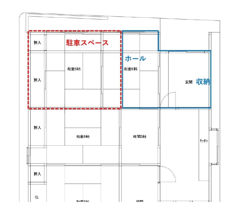 改修前は、ご自宅前に駐車場を借りておられましたが、将来を見据え、普段使われていなかった和室をガレージへと改修しました。
