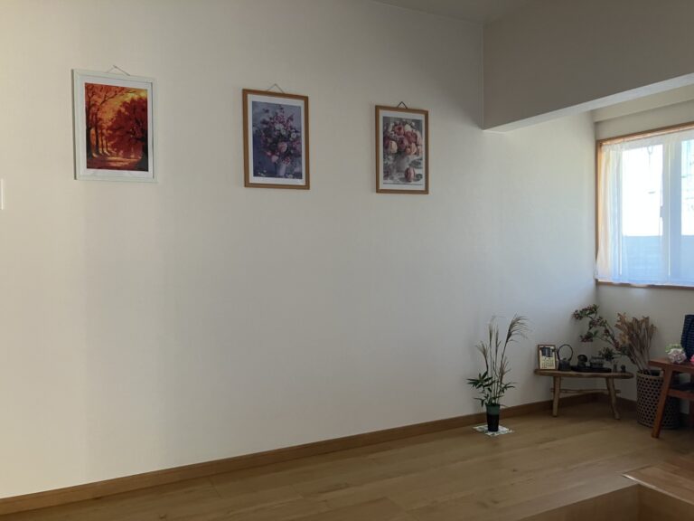 和室を改修し玄関ホールを施工、O様とお母様の作品が飾ってありました