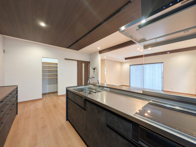 奥様の「もっと楽に、気持ちよく使いたい」という想いを大切に、収納力のあるカップボードとパントリーを設けました。