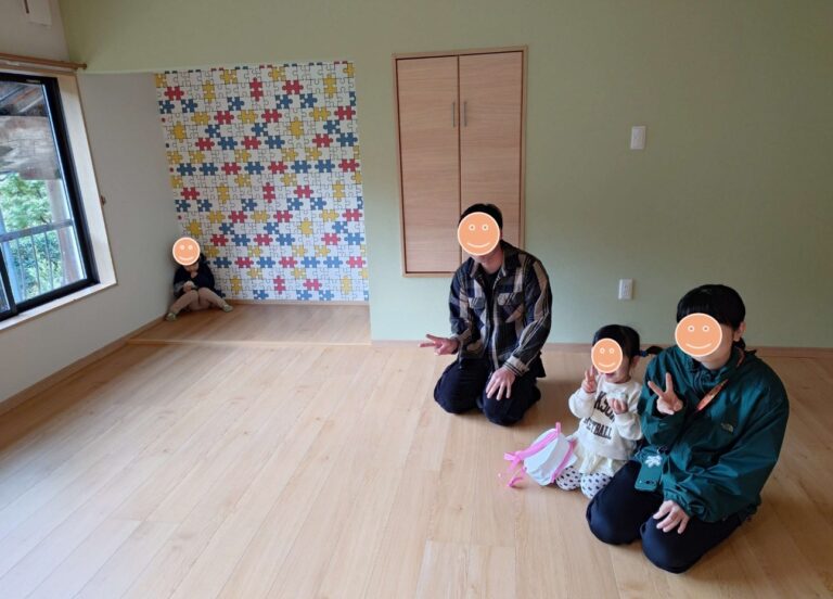 お引渡しの際、広々としたLDKではお子さまが元気いっぱいに走り回ったり、収納スペースにかくれんぼをして遊んだりと、新しい住まいを思いきり楽しんでおられました♪