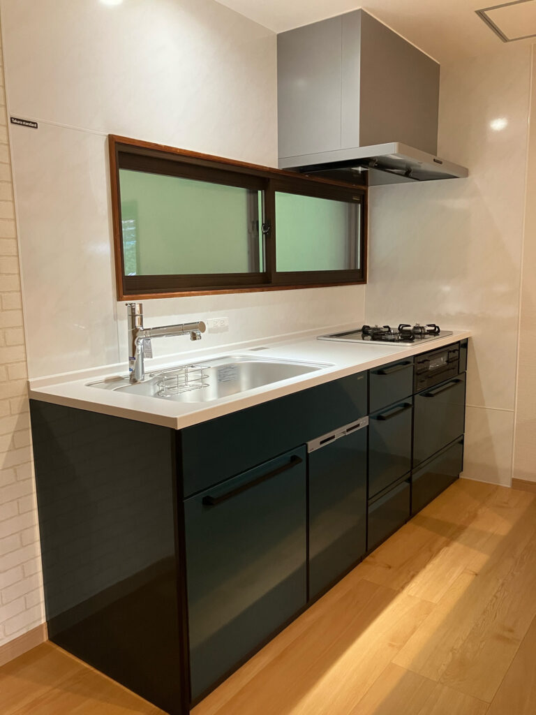 2階のDKには、奥様のお好きな“緑”をキッチン扉に取り入れました