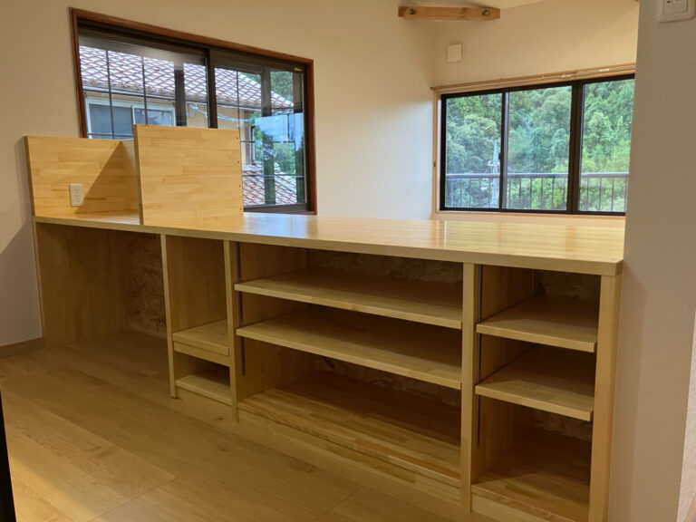 今回は、Y様の暮らし方に合わせて、使い勝手を最優先に考えた“造作棚”をつくりしました