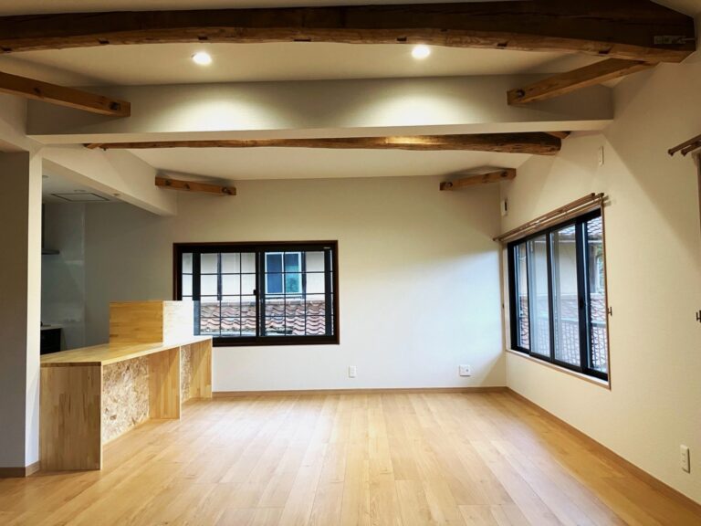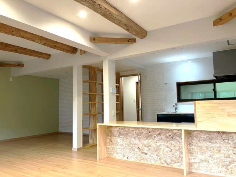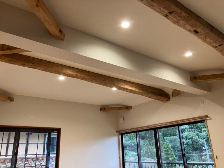 天井は、あえて梁を見せる「現し(あらわし)」仕上げを採用しました
