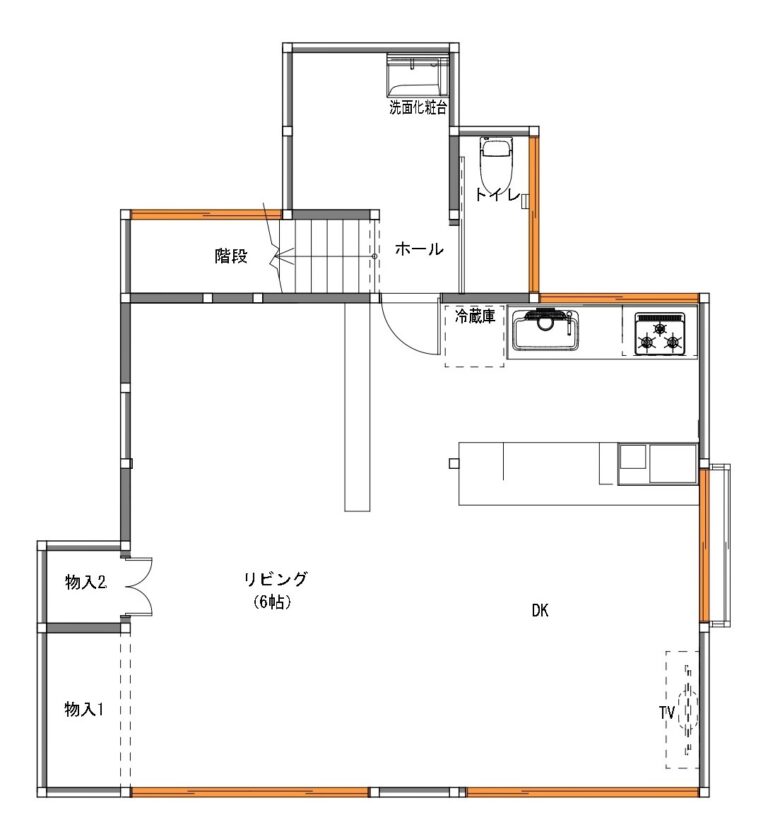 DKとリビングをつなげたことで、料理をしながら家族の様子を見守れるレイアウトに